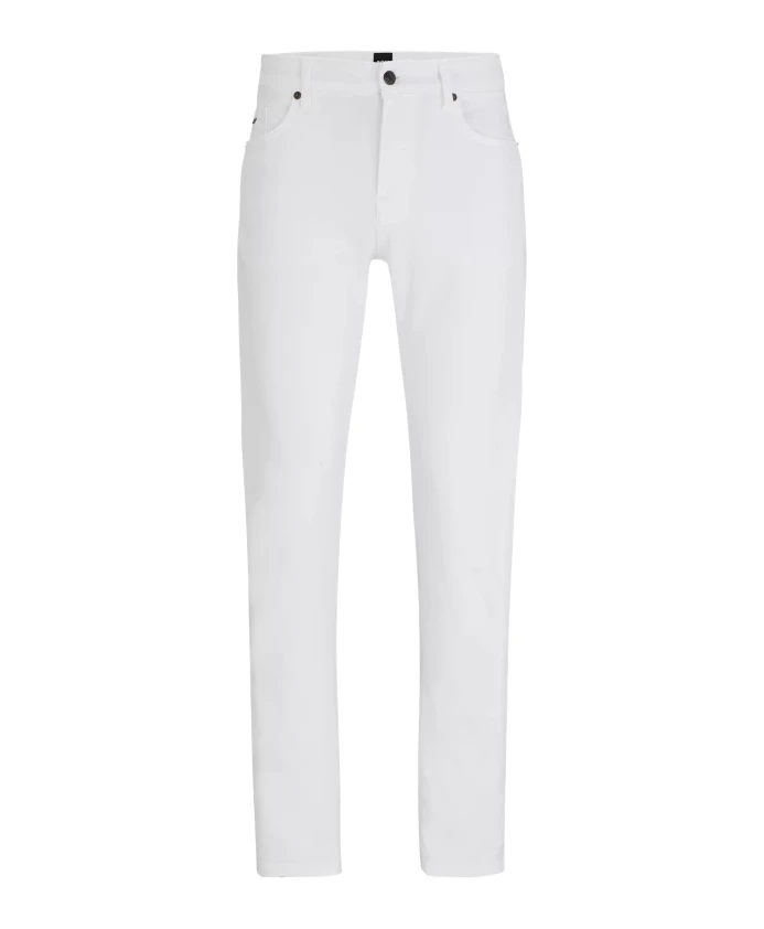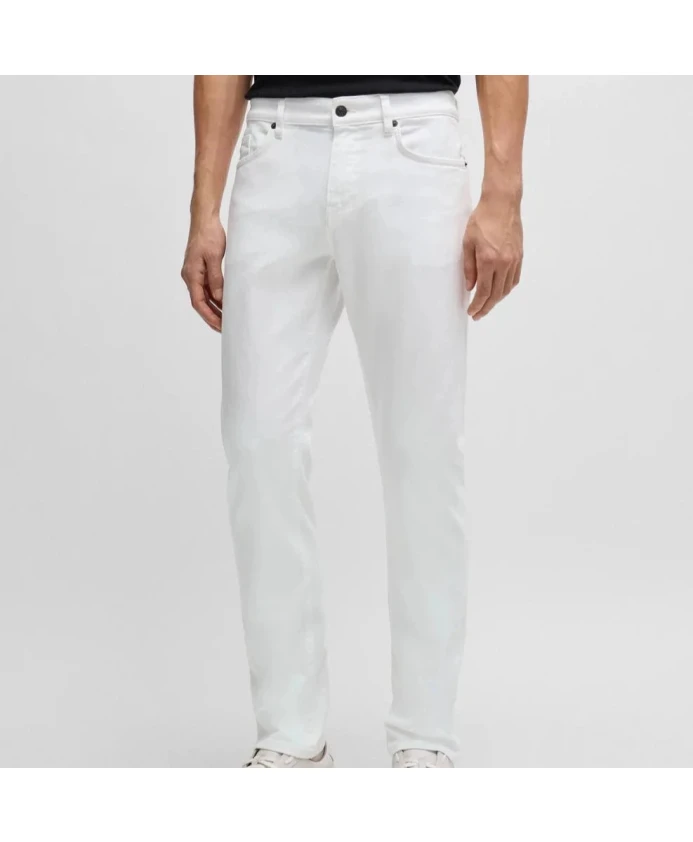 Джинсы Hugo зауженного кроя сочетают в себе облегающий, сшитый по фигуре силуэт и универсальный белый деним, идеально подходящий для элегантных повседневных образов. Ключевые характеристики: Белый | Белый | Размеры и посадка: Зауженный крой