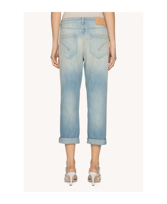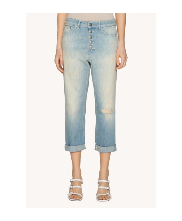 Подчеркните свой стиль с помощью этих укороченных женских джинсов Dondup. Они имеют свободный крой, пять карманов, логотип на спине, застежку на пуговицах с декоративными стразами и видимую строчку. Изготовлены из хлопка, стандартный крой.