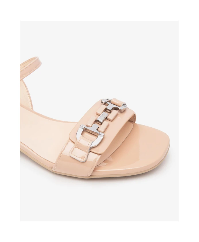 Подчеркните свой стиль с помощью этих женских сандалий на высоком каблуке Nerogiardini. Изготовленные в Италии, эти сандалии из лакированной кожи украшены элегантной пряжкой, имеют слегка мягкую стельку и устойчивый каблук высотой 2,5 см.