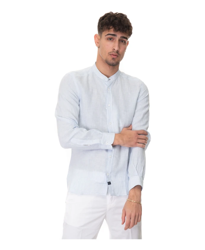 Рубашка с воротником-стойкой, эффект потертости. Fay, синий 31 385₽
