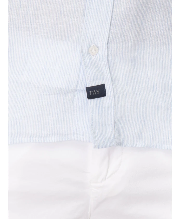 Подчеркните свой повседневный стиль с помощью этой мужской рубашки Fay. Рубашка имеет воротник-стойку, эффект потертости, многоцветный фантазийный узор, контрастный вышитый логотип и приталенный крой. Изготовлена из 100% льна. Бренд: FAY.
