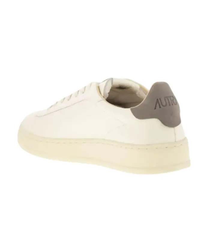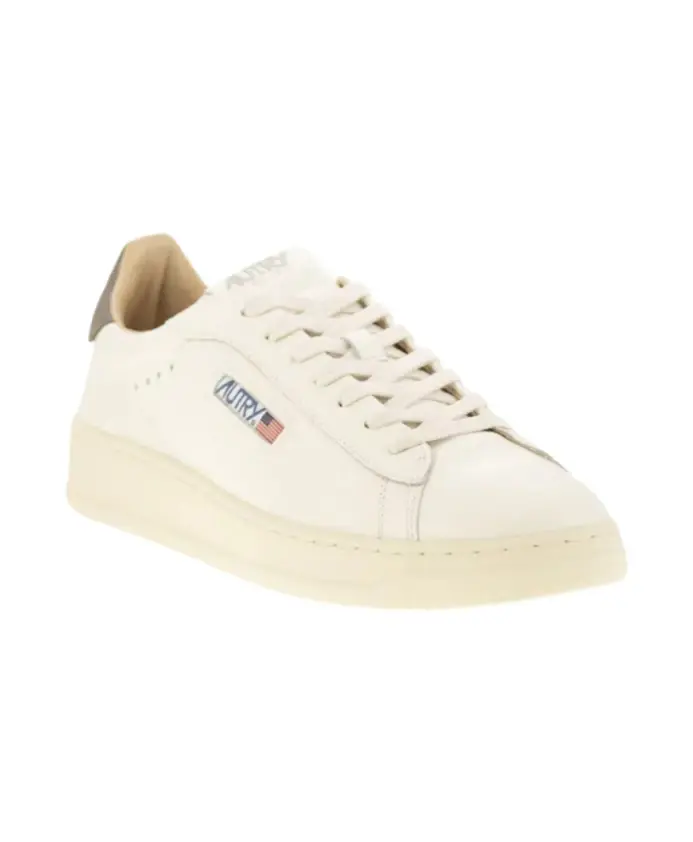 Мужские кроссовки Autry белого и кремового цвета с боковой аппликацией логотипа, шнуровкой спереди, перфорированным носком и закругленным носком. Состав: Верхний материал: 100% телячья кожа; Подкладка: 100% ткань; Подошва: 100% резина.