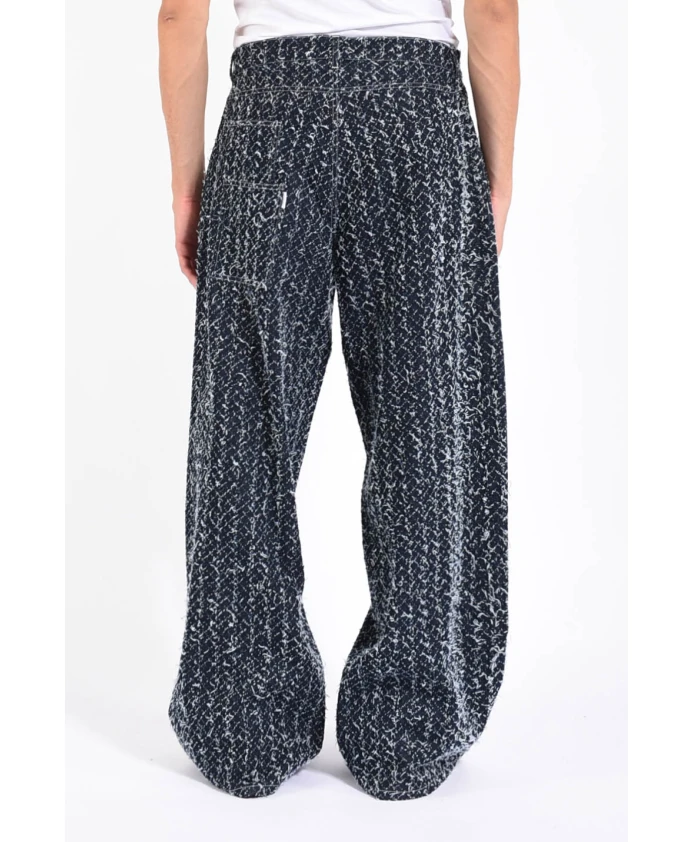 Подчеркните свой стиль с помощью этих широких брюк-бонсай для мужчин. Изготовленные из денима с ромбовидными вырезами, эти брюки с пятью карманами имеют застежку на пуговицу и молнию. Рост модели 185 см, размер L. Состав: 100% хлопок.