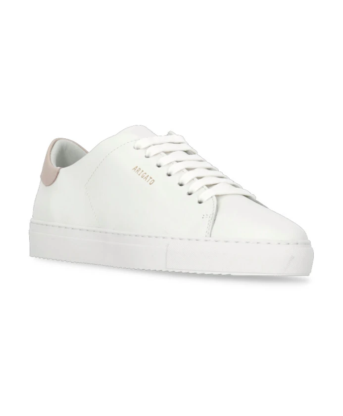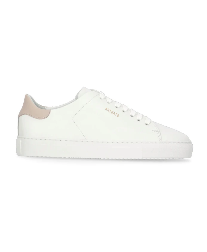 Дополните свой образ этими белыми кожаными женскими кроссовками Axel Arigato. Они имеют закругленный носок, шнуровку спереди, светло-розовую заднюю часть, золотой логотип сбоку и резиновую подошву. Размер соответствует стандартному.