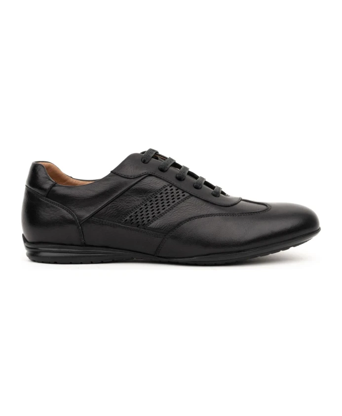 Подчеркните свой повседневный стиль с помощью кроссовок Sergio Moretti. Эти черные мужские кроссовки с закрытым носком изготовлены из 100% натуральной коровьей кожи, 100% текстильной подкладки и резиновой подошвы. Артикул: F315-B1.