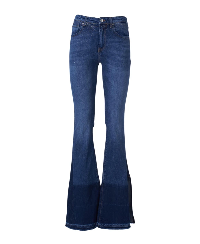 Подчеркните свой стиль с помощью этих расклешенных брюк Relish для женщин. Модель имеет 5 карманов, среднюю посадку на талии, украшена стразами, боковой разрез внизу и выполнена в темно-синем цвете. Состав: 99% хлопок и 1% эластан.