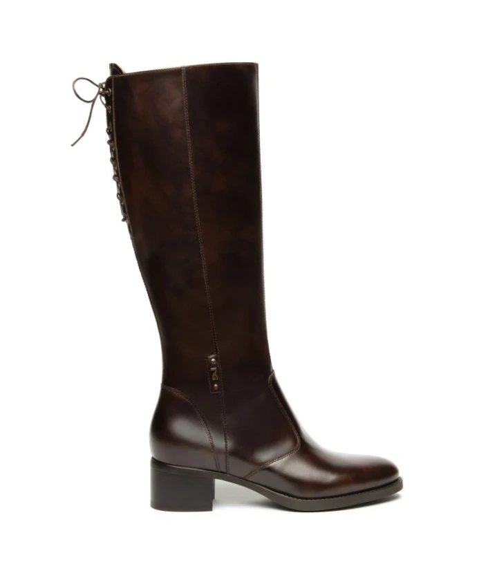 Подчеркните свой стиль с помощью этих женских кожаных сапог Nero Giardini. Модель имеет застежку-молнию и регулируемые шнурки на голенище, кожаную подкладку и устойчивый каблук высотой 4,5 см на резиновой подошве. Сделано в Италии.