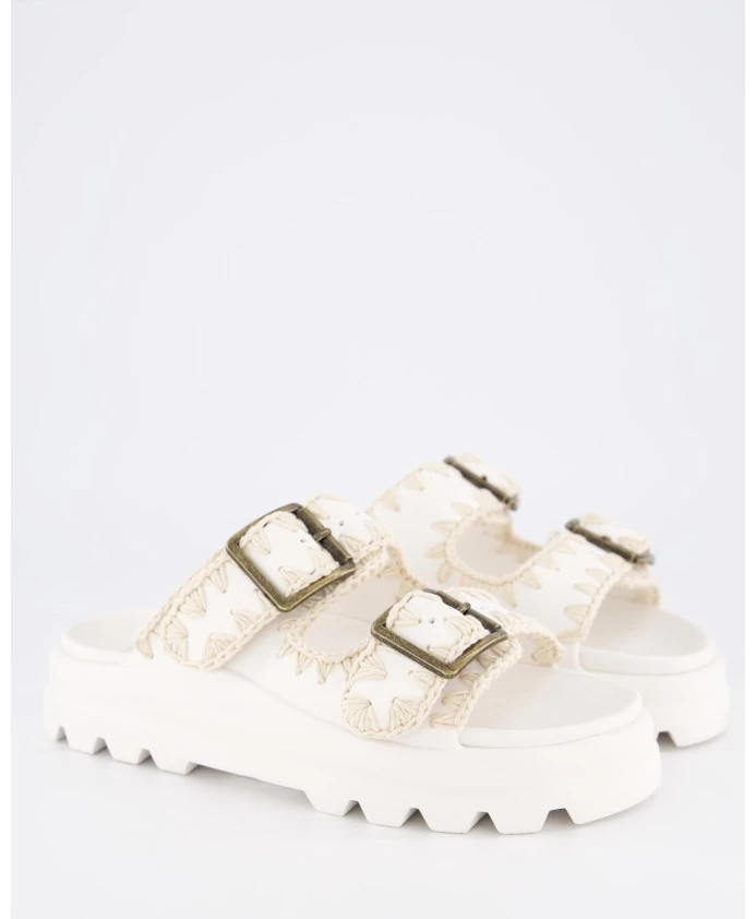 Подчеркните свой летний стиль с помощью этих цельных шлепанцев Mou Dames Eva с двумя пряжками. Разработанные специально для женщин, эти шлепанцы одновременно шикарны и удобны. Заказывайте свой обычный размер для идеальной посадки.
