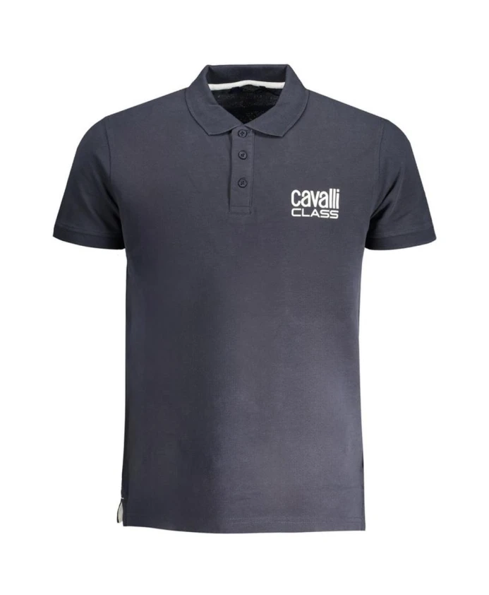 Обновите свой гардероб с помощью этой стильной и удобной синей хлопковой рубашки-поло от Cavalli Class. Рубашка с короткими рукавами, пуговицами, принтом и логотипом - незаменимый элемент гардероба для мужчин, следящих за модой.
