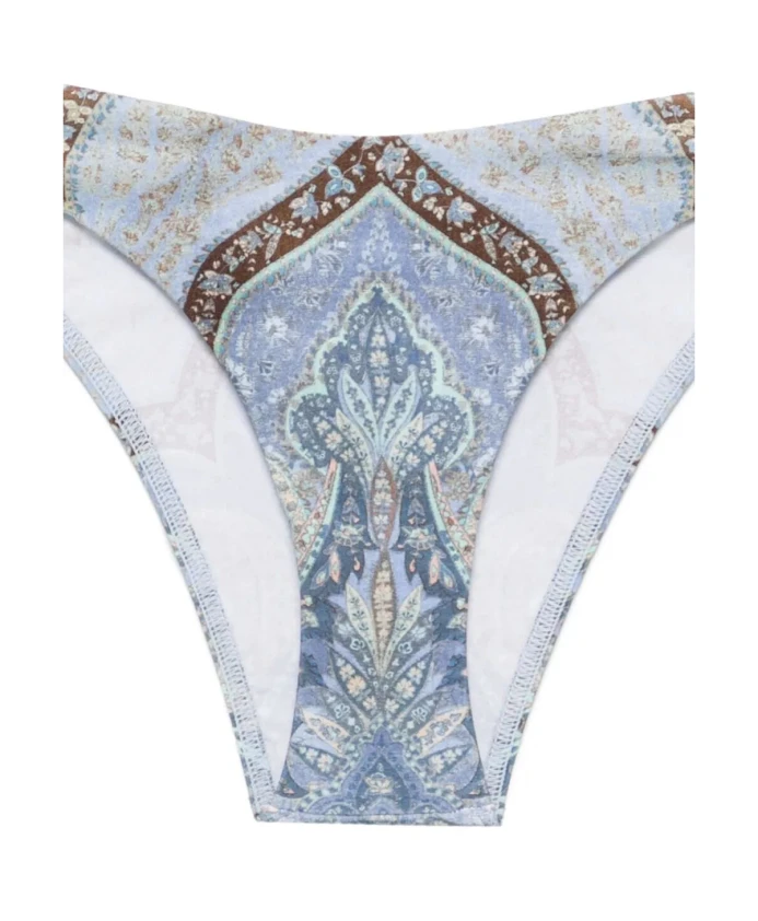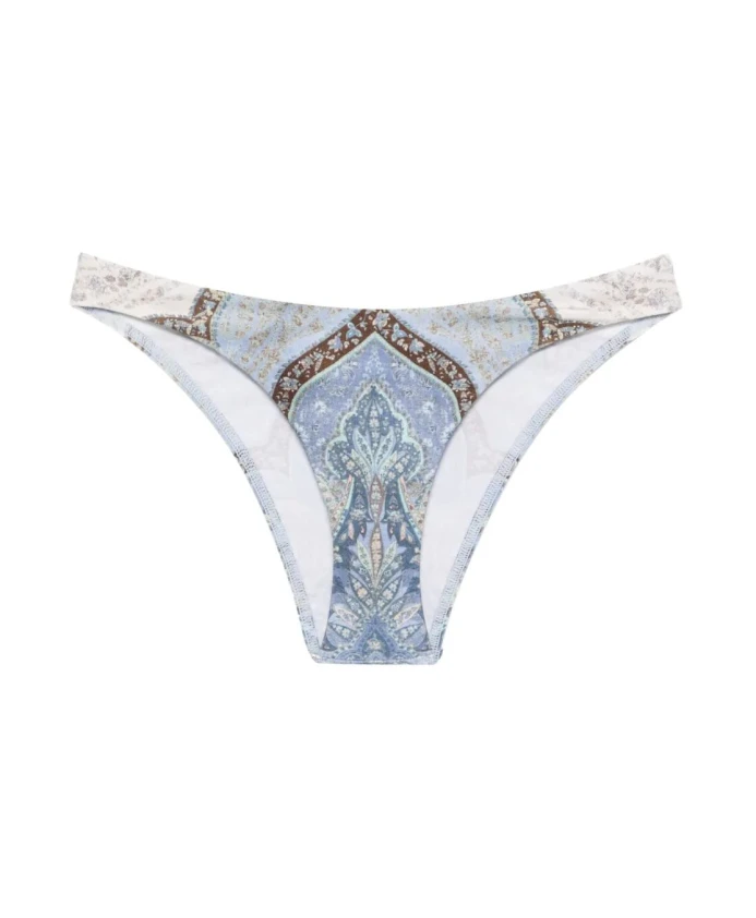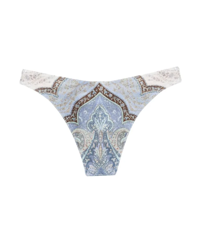 Плавки-бикини Zimmermann Wanderlust Scoop Pant из коллекции Wanderlust от Zimmermann имеют вырез-лодочку и идеально подходят для купания и пляжа. Ключевые особенности: Разноцветные | Синий гобелен | Плавки-бикини | Вырез-лодочка