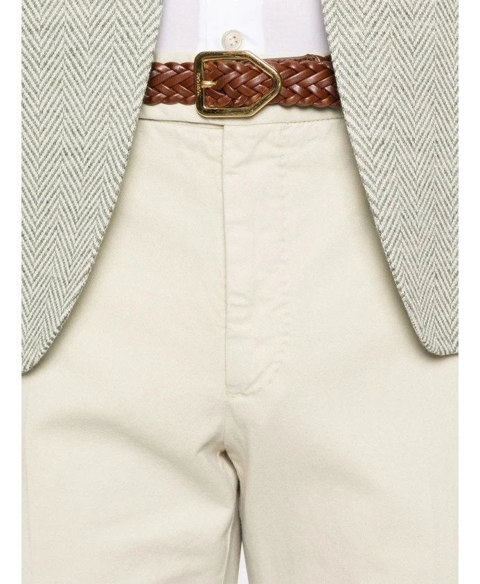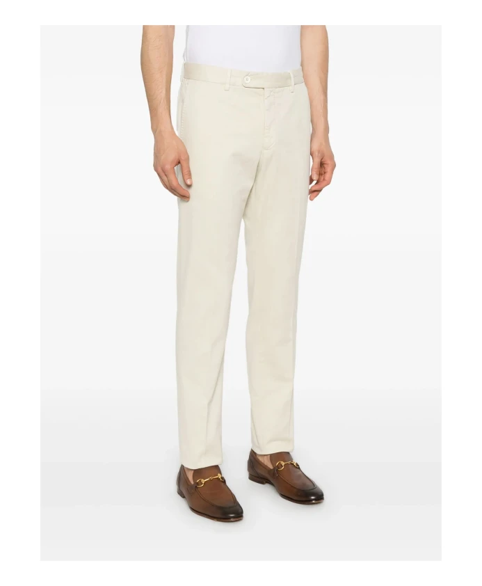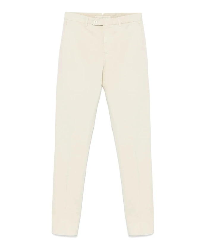 Обновите свой гардероб стильными чиносами Incotex для мужчин. Изготовленные из легкого бежевого хлопка, эти брюки имеют застежку на пуговицу и молнию спереди, шлевки для ремня, два наклонных боковых кармана и два задних кармана.