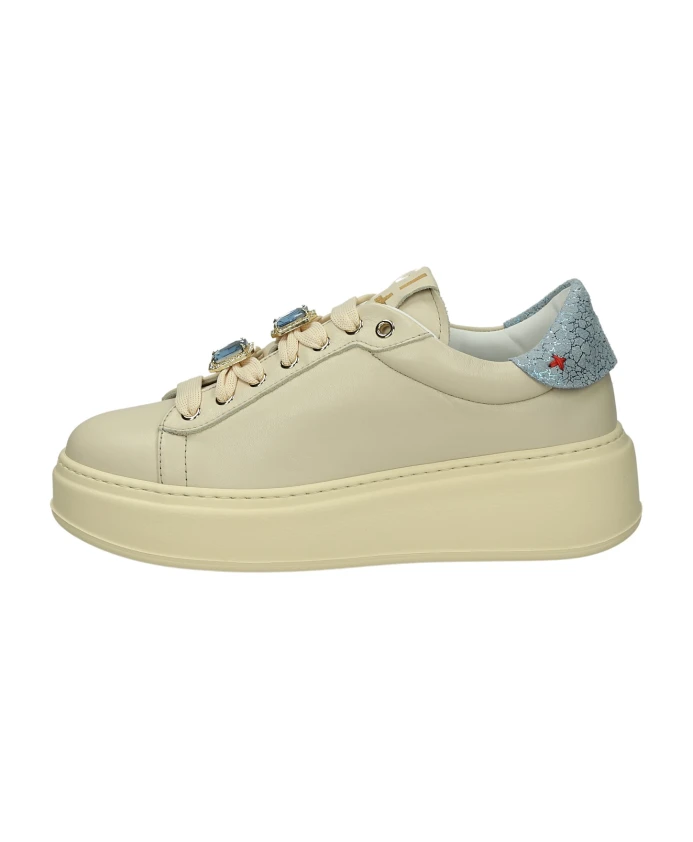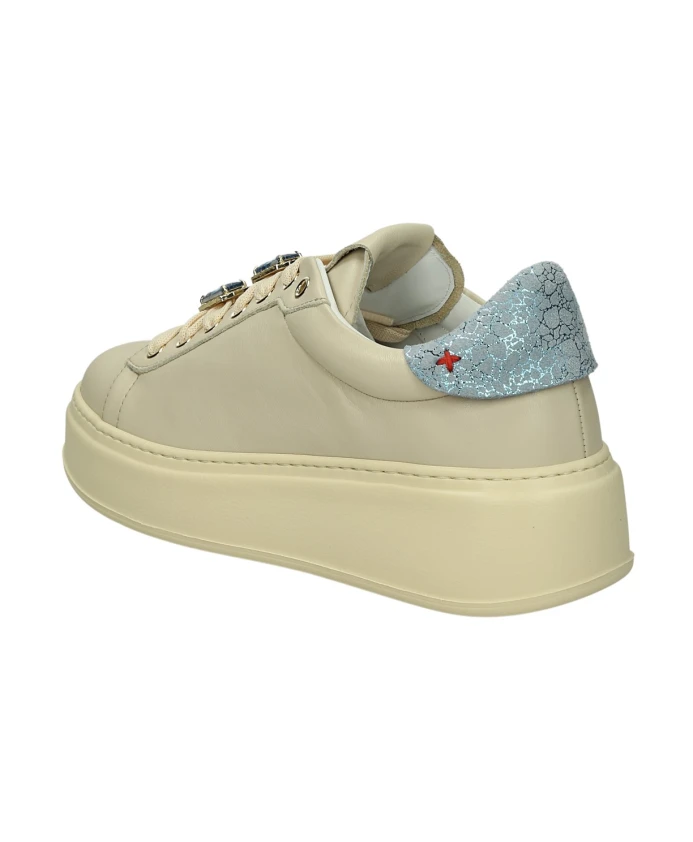 Подчеркните свой стиль с помощью этих низких женских кроссовок Gio+. Верх, подкладка и стелька выполнены из 100% натуральной кожи, подошва - из резины высотой 5 см. В комплекте съемная стелька и уникальные декоративные элементы.