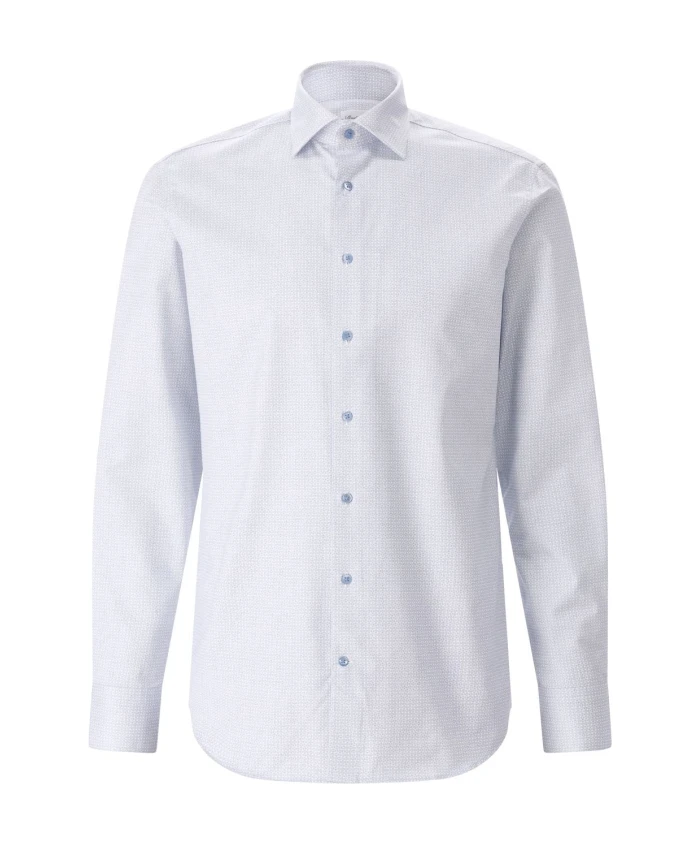 Рубашка Stenströms стандартного кроя с узором сочетает в себе двойную крученую хлопковую саржу и изысканную узорчатую отделку, создавая элегантный и универсальный образ, идеально подходящий для работы и неформальных случаев. Ключевые особенности: Синий | Светло-синий | Двойная крученая хлопковая ткань | Саржевое переплетение | Мягкая на ощупь | Воротник-стойка | Застежка на пуговицы | Регулируемые спортивные манжеты | Разрезы на рукавах на пуговицах | Складки на спине | Закругленный низ | Современный узор по всей поверхности | Узорчатая внутренняя планка/отделка | Изысканные детали | Размеры и крой: Стандартный крой | Состав ткани и уход: 100% хлопок | Машинная стирка при 40°C
