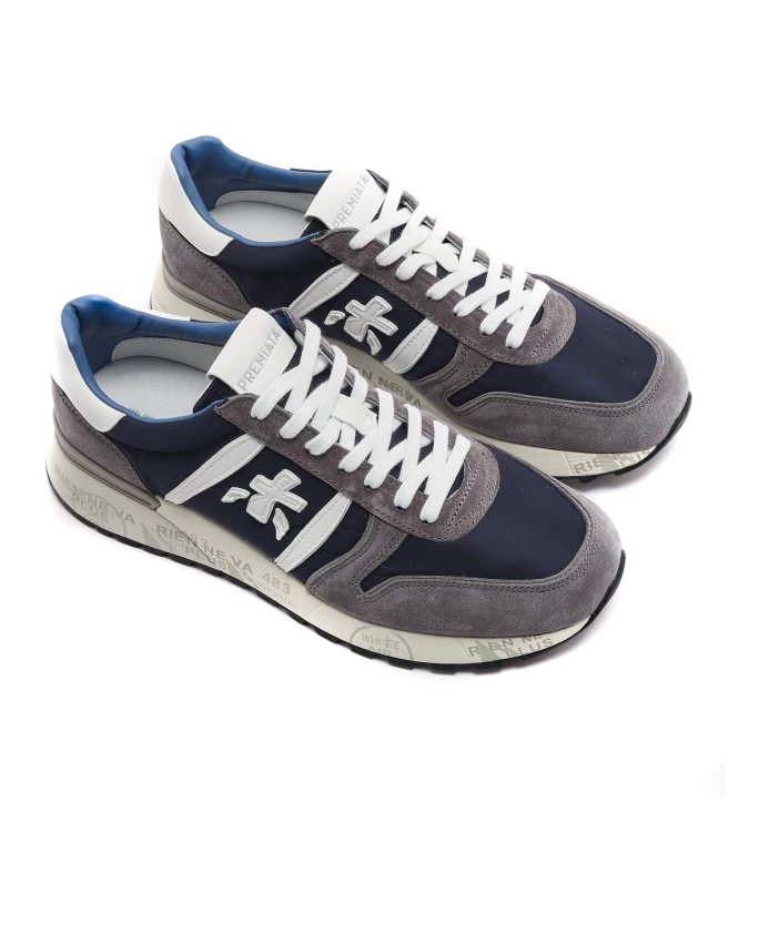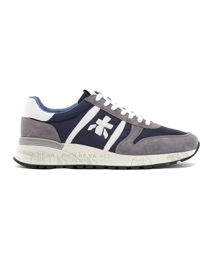 Подчеркните свой стиль с помощью этих бело-голубых кроссовок Lander от Premiata. Изготовленные из замши и нейлона, они имеют шнуровку, мягкую вставку в области щиколотки, фирменную стельку и резиновую подошву высотой 4,2 см.