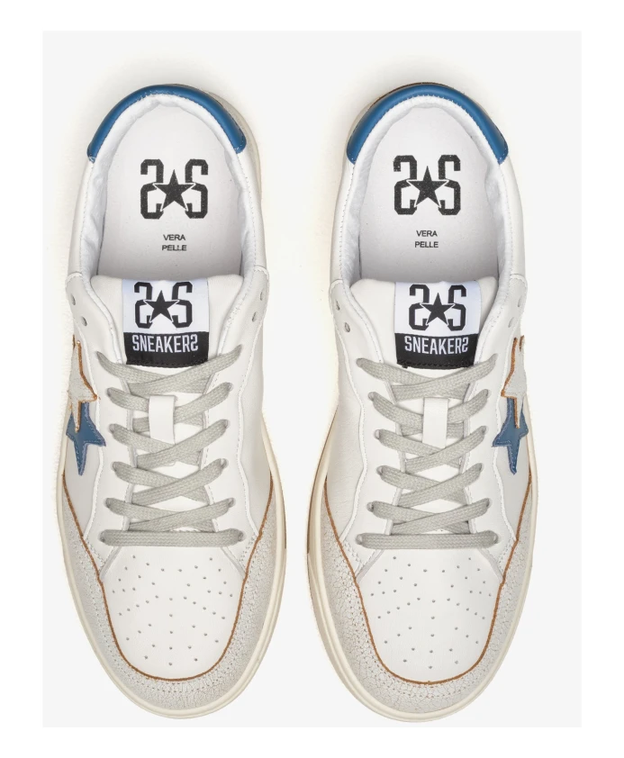 Белые кожаные кроссовки с синими деталями 2Star, мультиколор