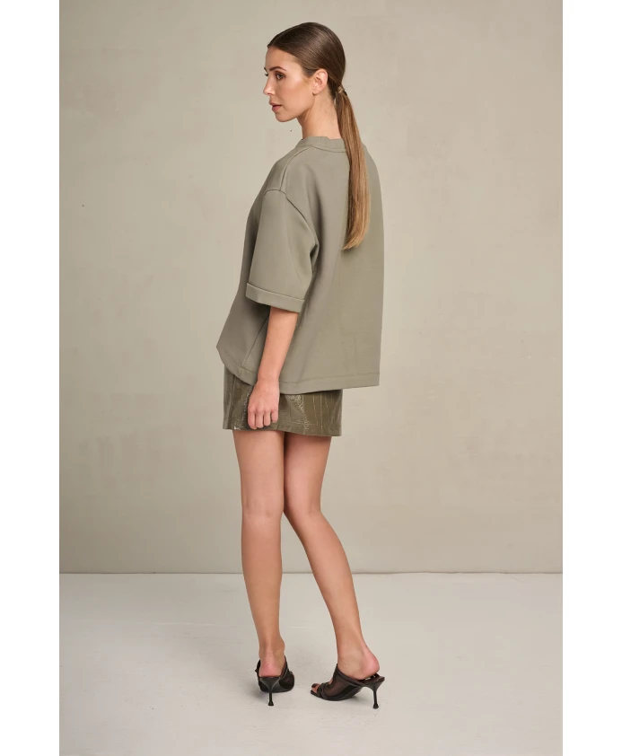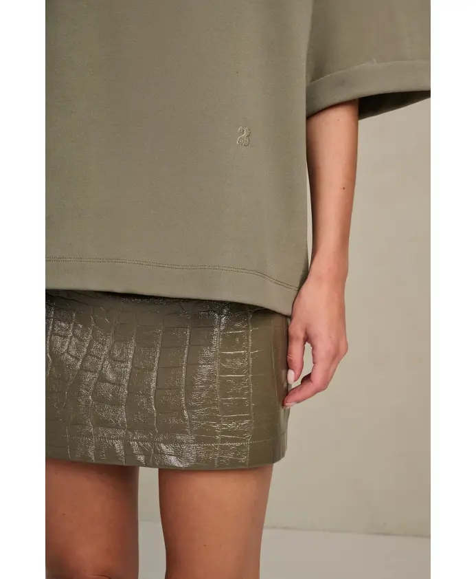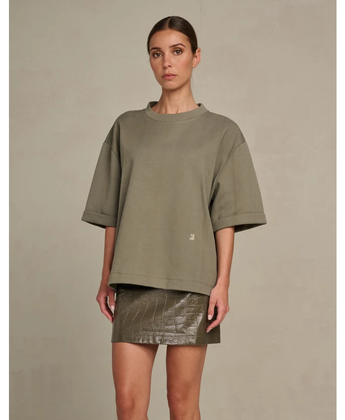 Наша незаменимая футболка оверсайз, которая дополнит ваш образ в начале сезона. Она обеспечивает элегантный вид, сохраняя при этом комфорт и стиль. Идеально подходит для многослойной одежды или для самостоятельного ношения.