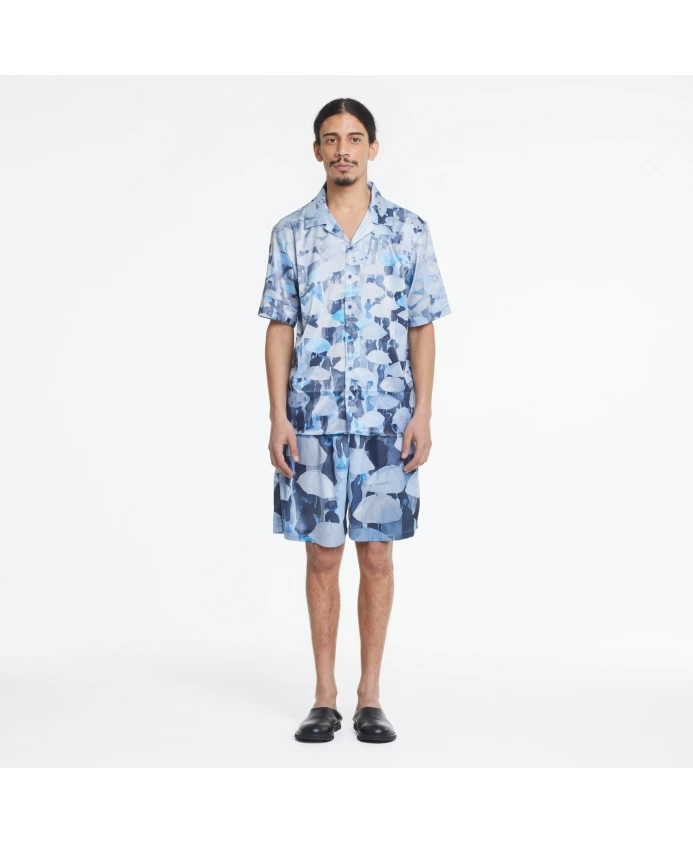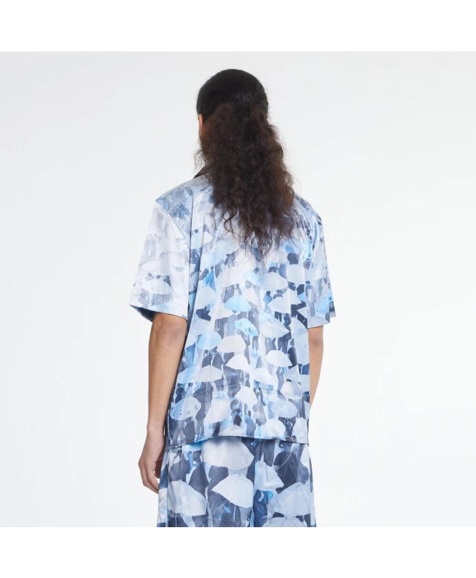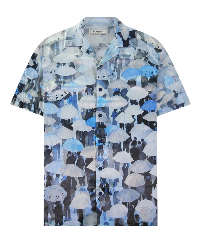 Подчеркните свой стиль с помощью синей рубашки FLÀNEUR Umbrella Shirt с культовым принтом в виде зонта из коллекции. Изготовлено в Турции из 100% полиэстера. Доступен в размере L. Идеально подходит для современного мужчины.