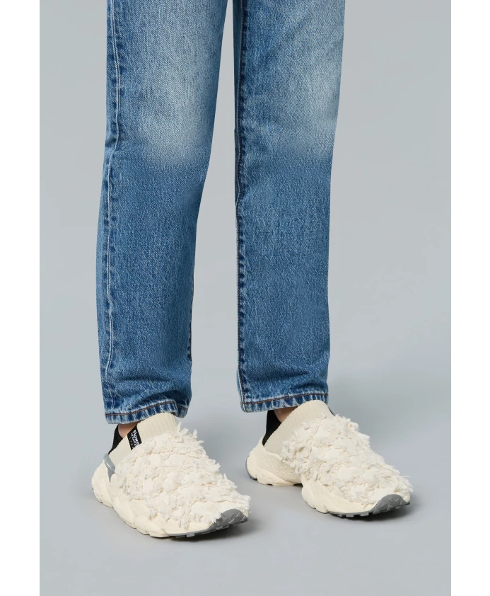 Слипоны с верхом из парусины, отделанной бахромой. Каблук выполнен из технической ткани для удобства надевания и снимания. Пробковая стелька и сверхлегкая резиновая подошва с боковым протектором и индивидуальной отделкой.