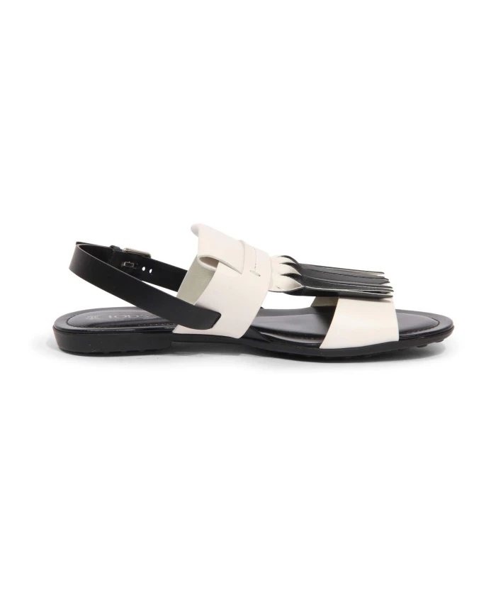 Подчеркните свой стиль с помощью этих женских сандалий на плоской подошве от Tod's. Изготовленные в Италии, эти сандалии отличаются широкой колодкой и уникальным дизайном с бахромой в стиле оригами белого и черного цвета.