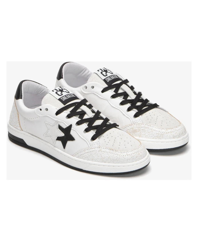 Белые кожаные кроссовки с черными деталями 2Star, белый