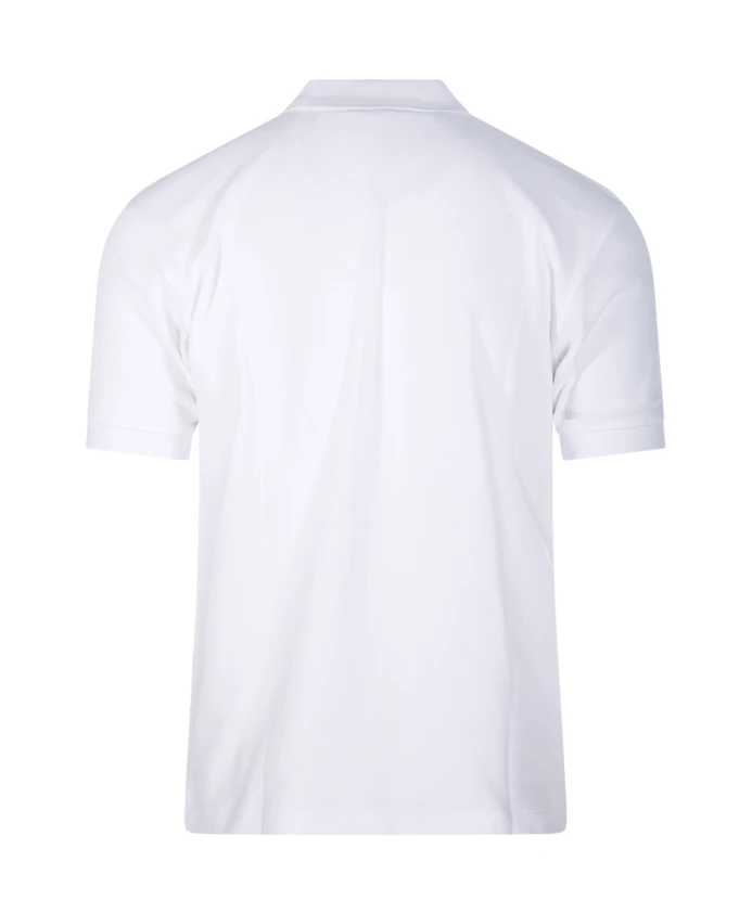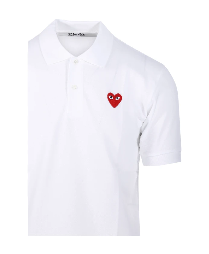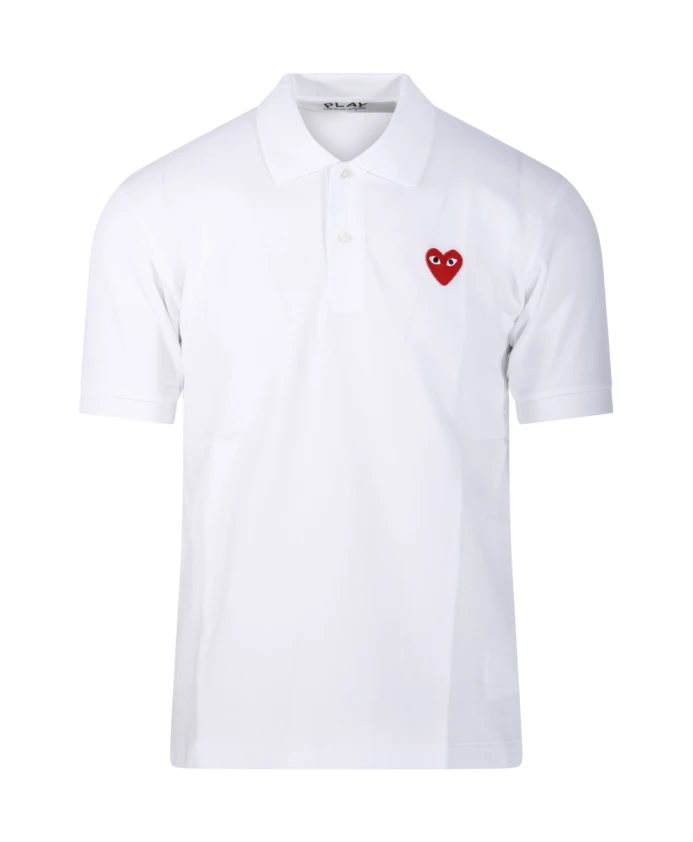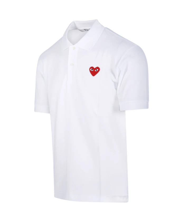 Подчеркните свой повседневный стиль с помощью этой рубашки-поло Comme des Garçons Play, украшенной эффектным логотипом в виде красного сердца на чистом белом фоне. Изготовлена из 100% хлопка для максимального комфорта.