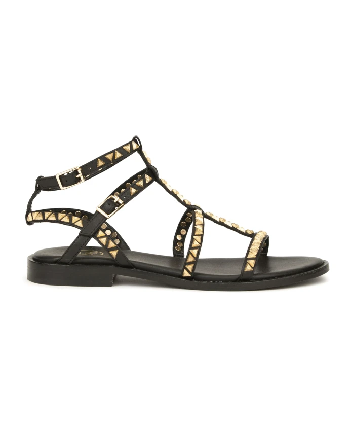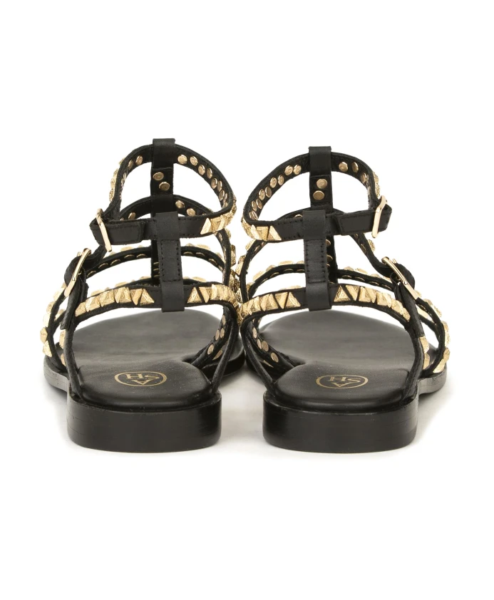Подчеркните свой стиль с помощью этих сандалий-балеток ASH Pandora из черной кожи. Сандалии украшены заклепками, имеют регулируемый ремешок на щиколотке с пряжкой и кожаную подошву с логотипом. Высота каблука 1,8 см.