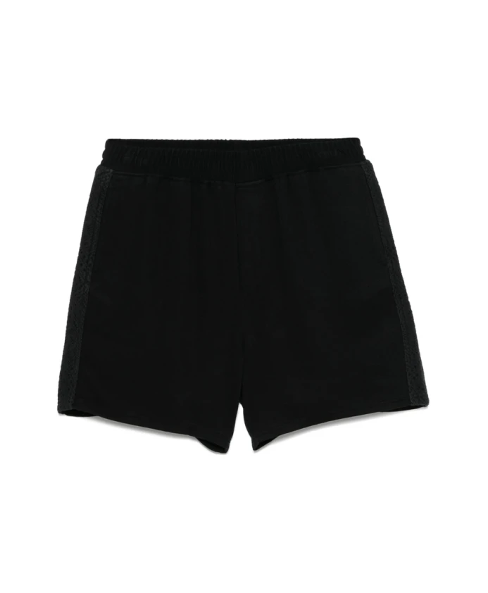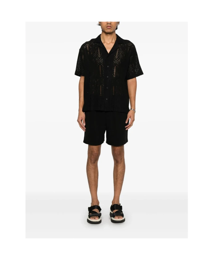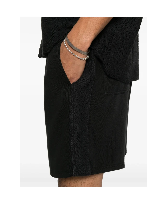 Оставайтесь стильными и чувствуйте себя комфортно в этих черных коротких шортах REPRESENT для мужчин, оснащенных эластичным поясом с внутренним шнурком, двумя боковыми карманами и двумя задними накладными карманами.