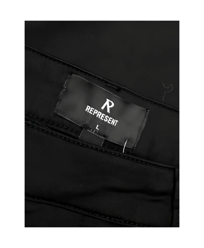 Подчеркните свой стиль с помощью этих черных мужских брюк прямого кроя от REPRESENT, оснащенных множеством накладных карманов и застежкой на пуговицу. Изготовлены из 99% хлопка и 1% эластана для комфортной посадки.