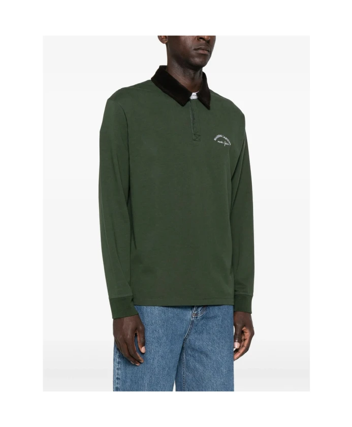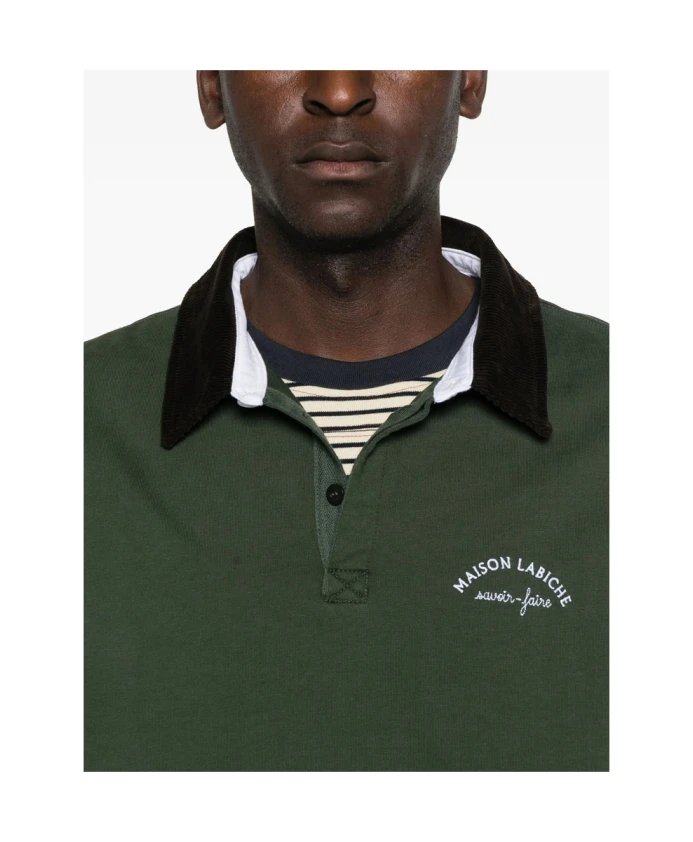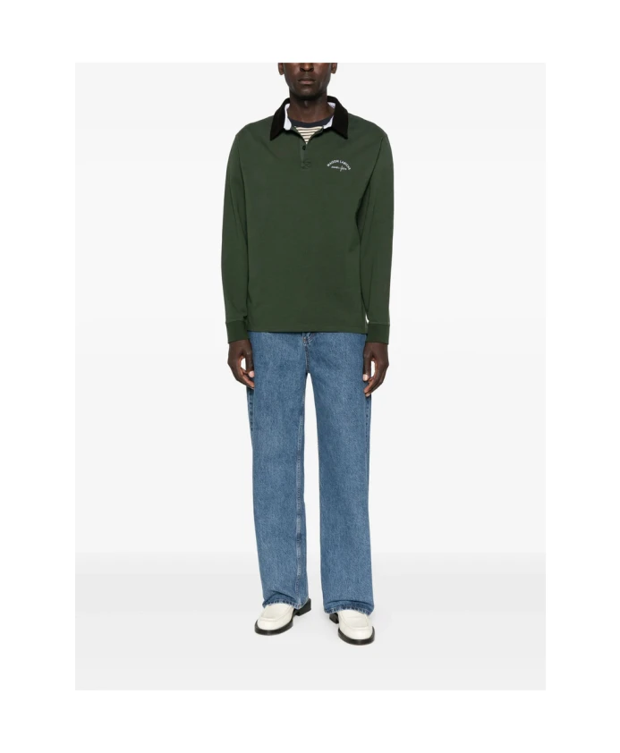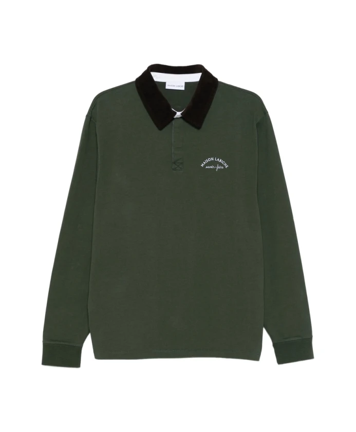 Подчеркните свой стиль с помощью этой зеленой рубашки-поло от Maison Labiche с бархатным воротником, длинными рукавами, застежкой на пуговицы и вышитым логотипом. Изготовлена из 100% хлопка с ребристыми манжетами.