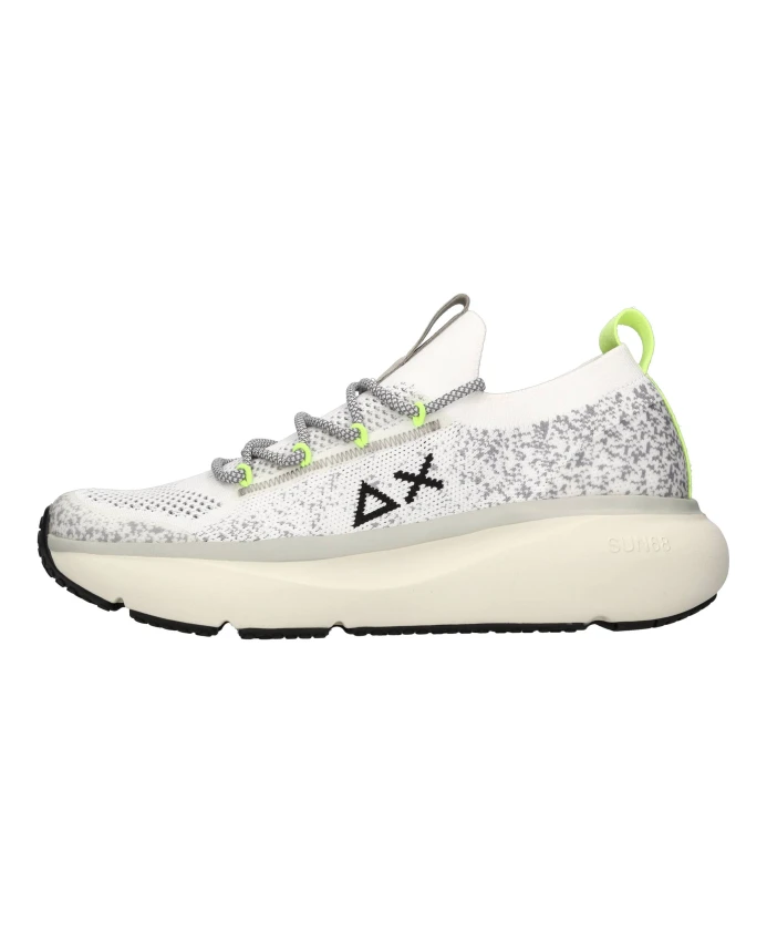 Подчеркните свой стиль с помощью этих кроссовок Sun68, модель Z34127, изготовленных из ткани. Они оснащены шнуровкой спереди и резиновой подошвой с логотипом. Выделитесь из толпы благодаря неоново-зеленым деталям.