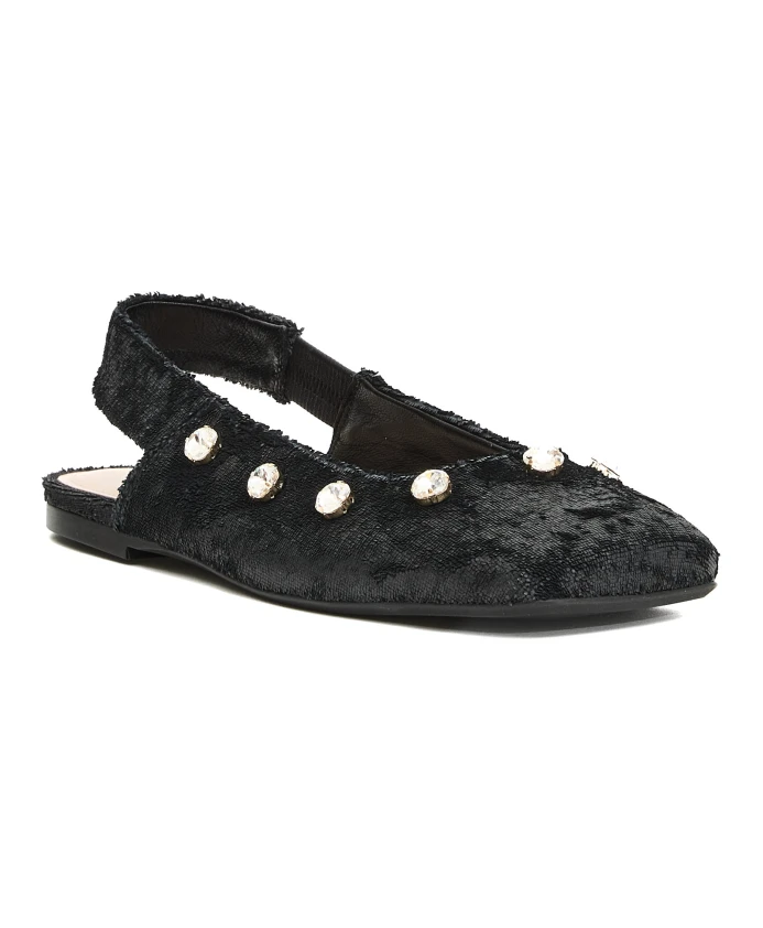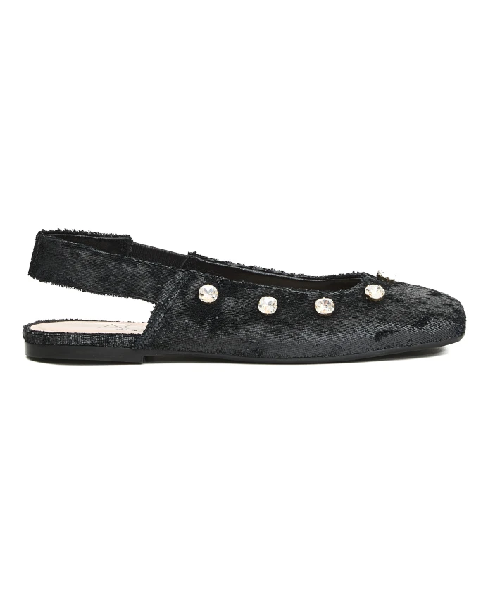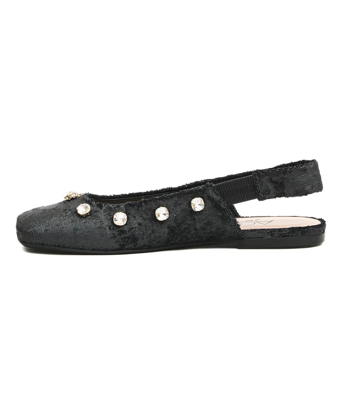 Подчеркните свой стиль с помощью этих балеток-слингбэков от AGL из черной кожи с уникальной бархатистой текстурой, украшенных стразами. Стильный выбор для любого случая, сочетающий в себе комфорт и элегантность.