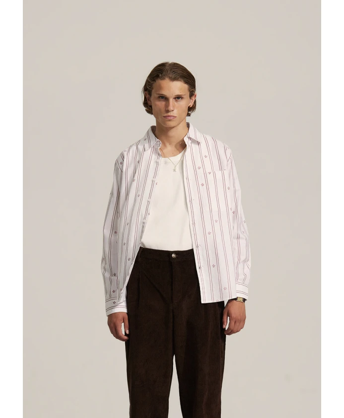 Подчеркните свой повседневный стиль с помощью красной рубашки Bram's Fruit Lemon Pattern Shirt. Эта плотная рубашка в стиле Оксфорд украшена полосатым узором, в который ненавязчиво интегрирован логотип лимона.
