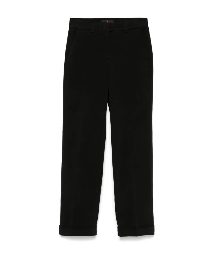 Обновите свой гардероб с помощью этих женских брюк прямого кроя от Peuterey классического черного цвета. Они имеют скрытую застежку спереди, петли для ремня, два боковых кармана и два прорезных кармана сзади.