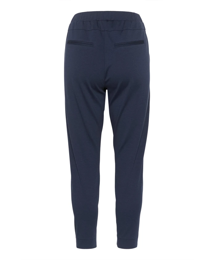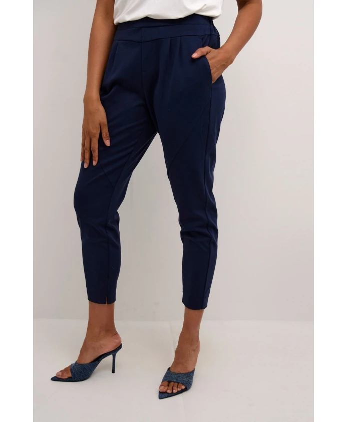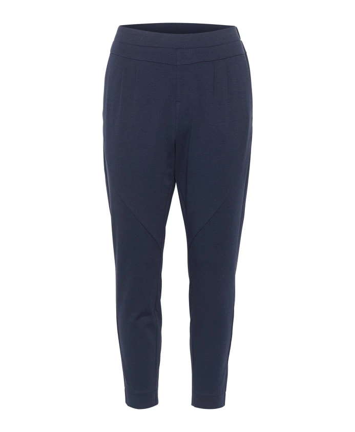 Оставайтесь в комфорте и выглядите стильно в этих классических кремовых укороченных брюках для женщин. Простой дизайн, широкий эластичный пояс и мягкая, высококачественная ткань. Доступны в темно-синем цвете.