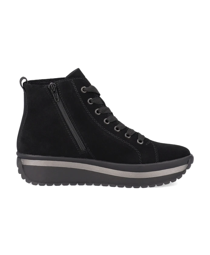 Насладитесь комфортом и стилем в этих ботильонах Rieker на шнуровке с замшевым верхом и уютной меховой подкладкой для холодных дней. Ключевые особенности: Черный | Замша | Размер и посадка: Удобная посадка |