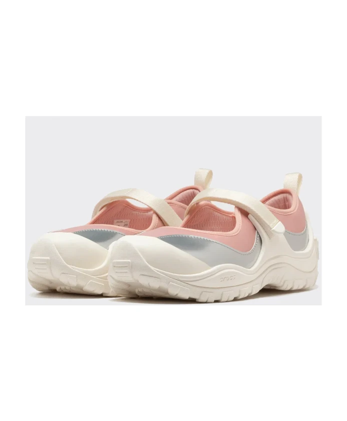 Подчеркните свой стиль с помощью этих балеток Crocs белого, розового и серебристого цветов. Гладкий материал с рельефными деталями. Ремешок на щиколотке для надежной фиксации. Логотип выгравирован снаружи.