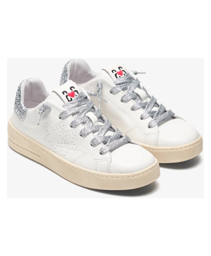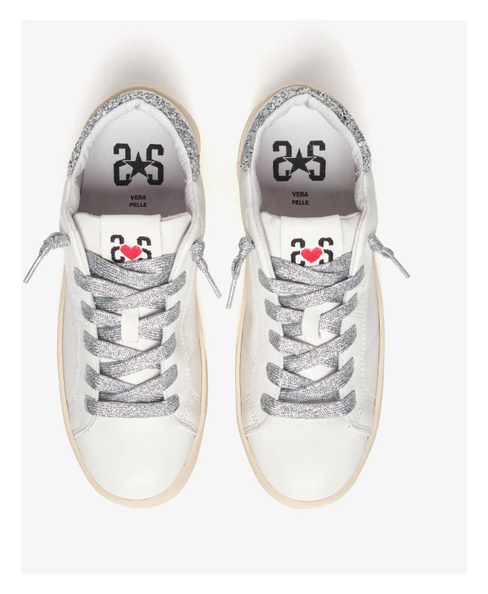 Белые кожаные кроссовки с серебристыми блестками. 2Star, белый