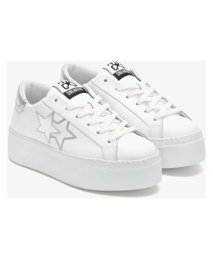 Белые кожаные кроссовки с серебряными деталями 2Star, белый