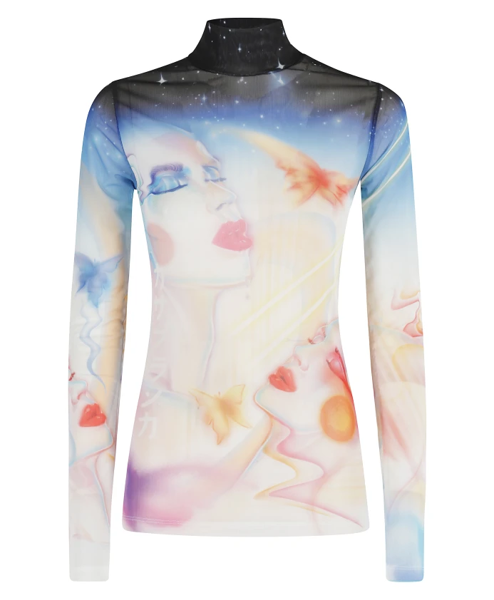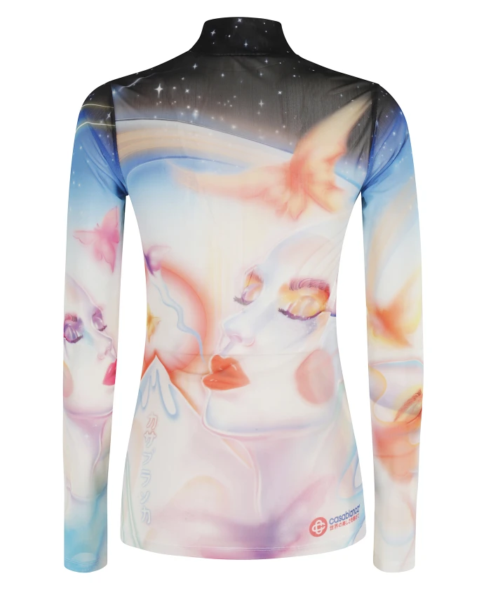 Подчеркните свой стиль с помощью этого разноцветного тюлевого топа от Casablanca. Топ с высоким воротником, длинными рукавами и принтом по всей поверхности идеально подойдет для женщин, следящих за модой.