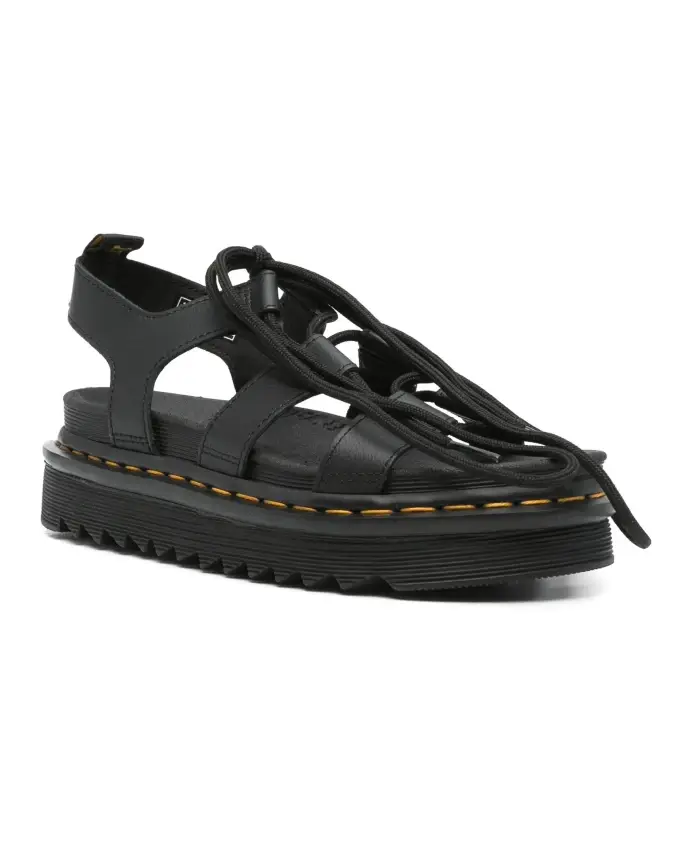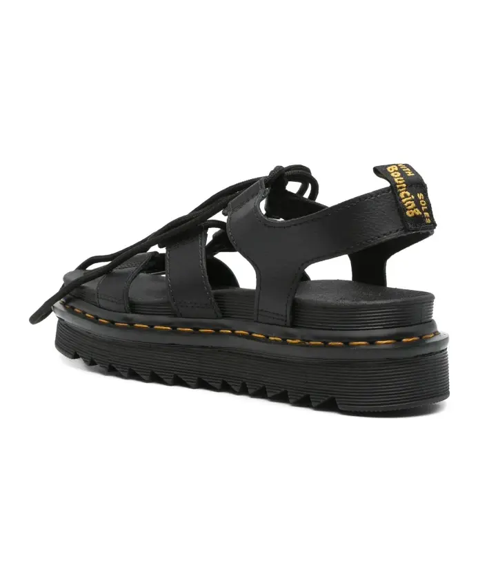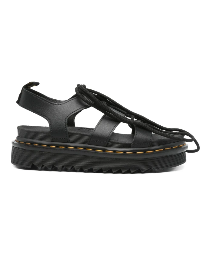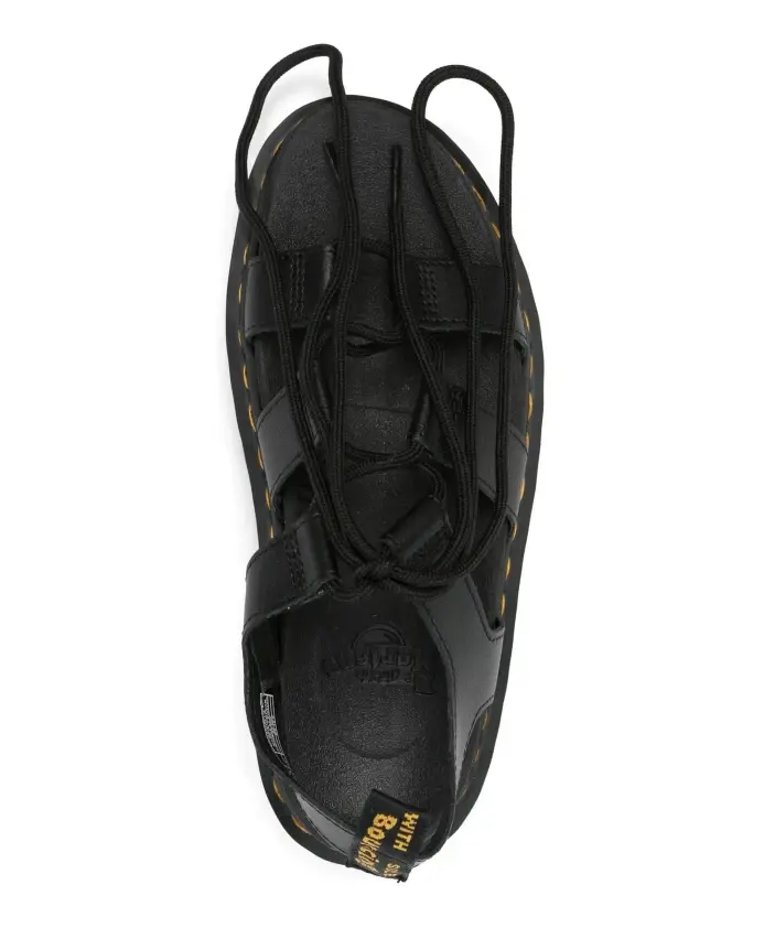 Подчеркните свой летний стиль с помощью этих женских сандалий на плоской подошве от Dr. Martens. Модель имеет черную шнуровку спереди, язычок с логотипом на пятке, стельку с логотипом и резиновую подошву.
