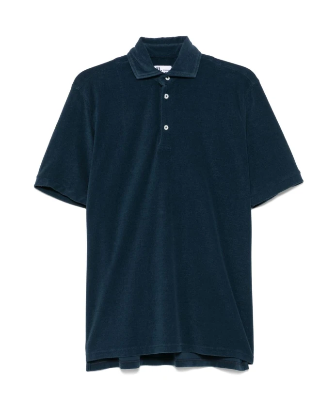 Подчеркните свой повседневный стиль с помощью этой темно-синей рубашки-поло Doppiaa с застежкой на пуговицы, короткими боковыми разрезами и короткими рукавами. Идеальный вариант для современного мужчины.