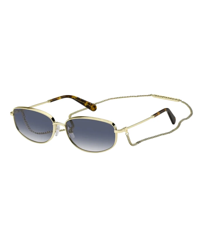 Подчеркните свой стиль с помощью этих солнцезащитных очков Marc Jacobs. Элегантная оправа золотистого цвета, линзы с синим градиентом и цепочка делают эти очки незаменимым аксессуаром для каждой модницы.