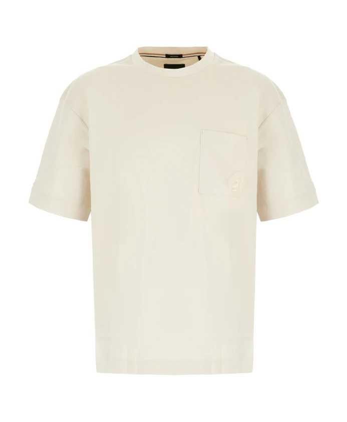 Футболка Hugo - это простая, универсальная повседневная футболка кремового цвета, созданная для создания непринужденных образов и легкого многослойного сочетания. Ключевые особенности: Белый | Кремовый