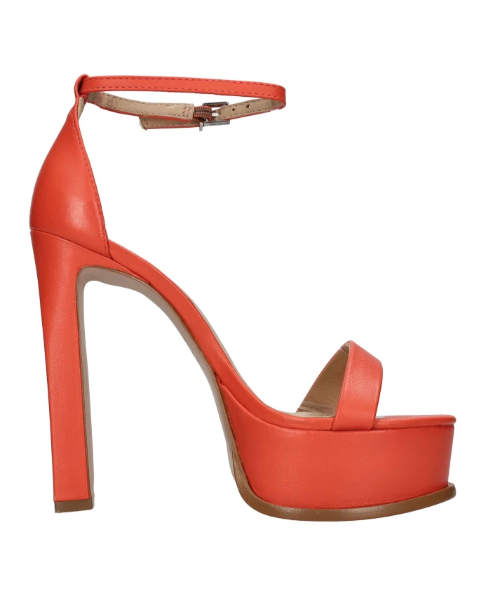 Подчеркните свой стиль с помощью этих защитных сандалий на высоком каблуке. Изготовлены из кожи, имеют платформу 4 см, кожаную подошву и подкладку. Выделитесь из толпы благодаря ярко-оранжевому цвету.