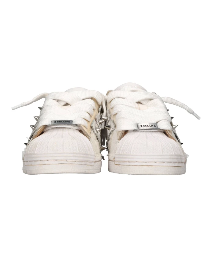 Подчеркните свой стиль с помощью этих женских кроссовок Adidas. Изготовлены из эко-кожи и ткани, украшены серебристыми заклепками для придания нотки гламура. Подкладка из ткани и резиновая подошва.