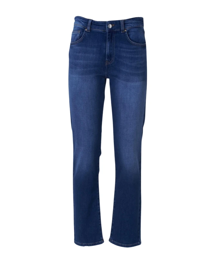 Приобретите женские прямые джинсы Relish со средней посадкой, зауженным кроем, 5 карманами, застежкой на пуговицу и молнию, темно-синего цвета. Состав: 97% хлопок, 1% эластомультиэстер, 1% лайкра.
