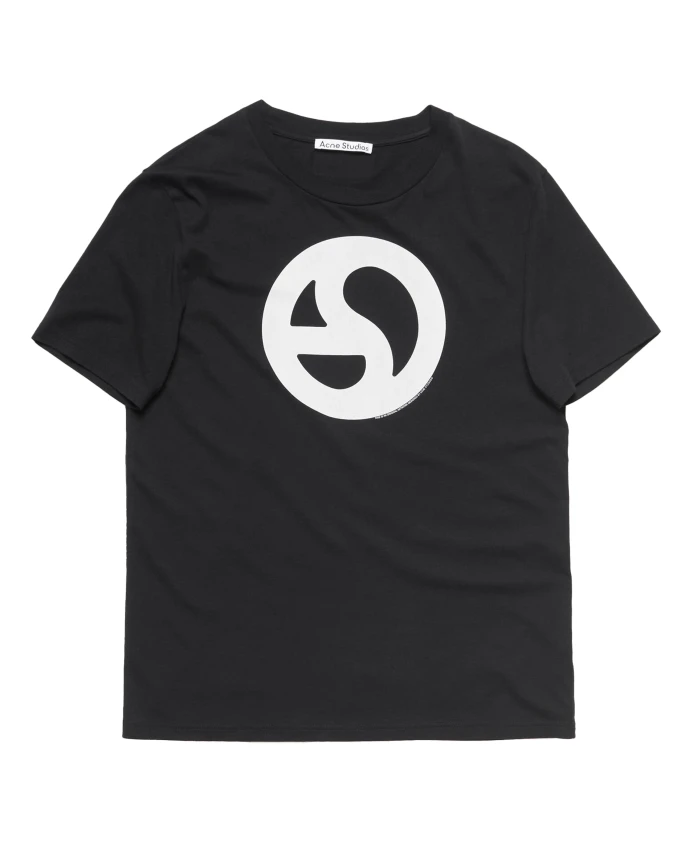 Дополните свой повседневный образ этой черной футболкой Acne Studios. Изготовленная из 100% хлопка, она имеет круглый вырез, белый логотип спереди и прямой низ. Доступна в международных размерах.