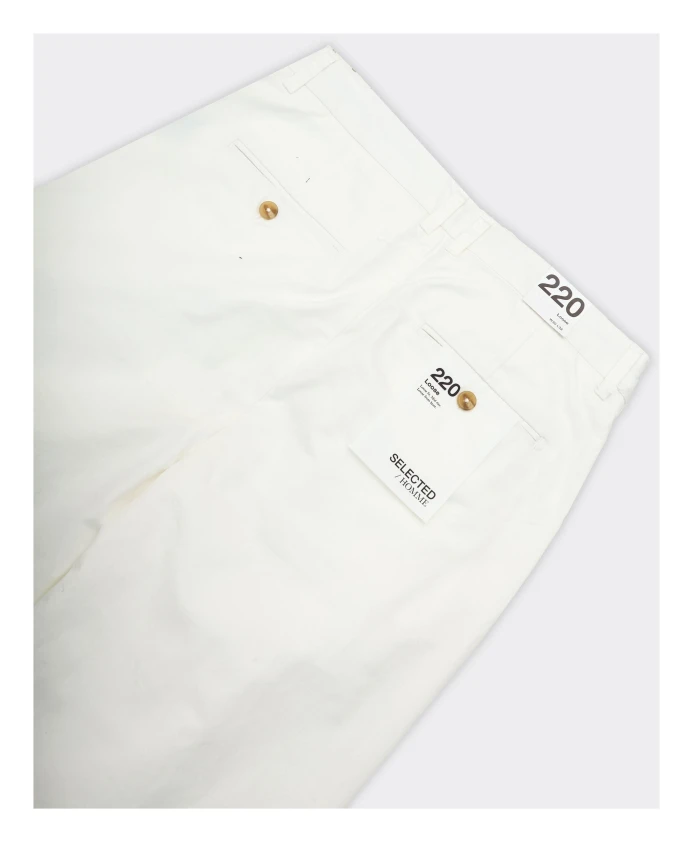 Подчеркните свой стиль с помощью этих прямых брюк Selected Homme белого цвета. Они имеют складки спереди, видимую центральную коричневую пуговицу, боковые карманы и задние карманы на пуговицах.