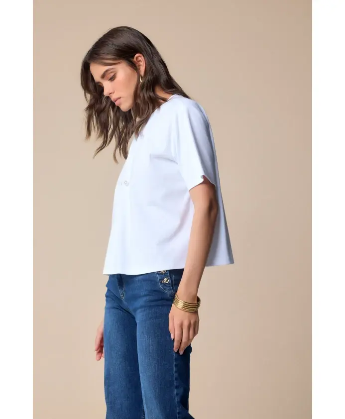 Откройте для себя стильную футболку от Kocca - универсальное дополнение к любому гардеробу, идеально подходящее для повседневных прогулок или многослойных образов. Ключевые особенности: Белый |