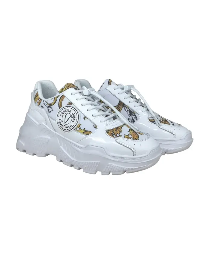 Versace Jeans Couture представляет эти элегантные белые кроссовки, идеально подходящие для того, чтобы добавить нотку роскоши к любому повседневному образу. Ключевые особенности: Белый цвет |